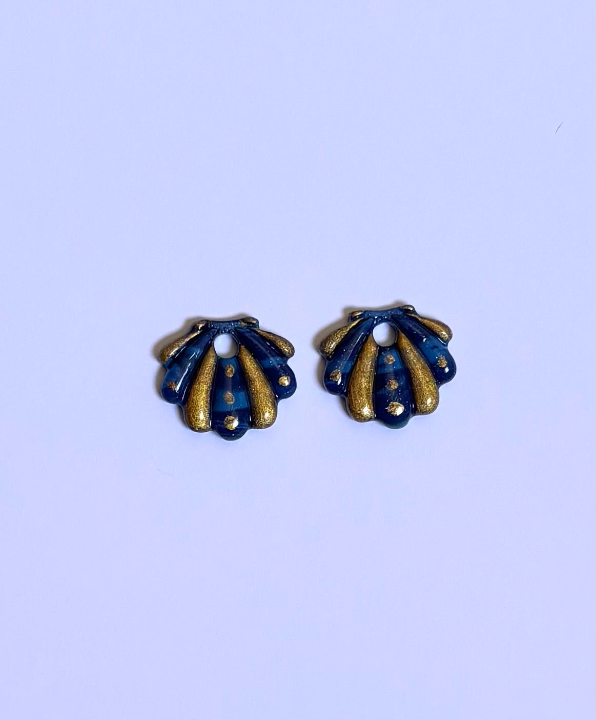 Une paire de Pampilles coquillage de 20 mm (bleu -doré)
