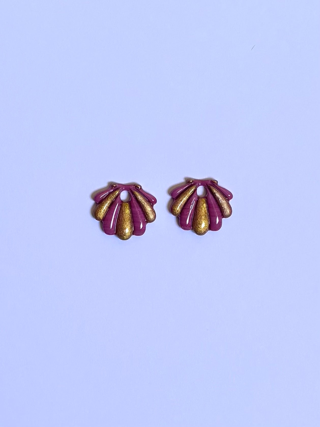 Une paire de Pampilles Coquillages de 20 mm en pâte polymère et recouverte légèrement de résine (rose- doré)