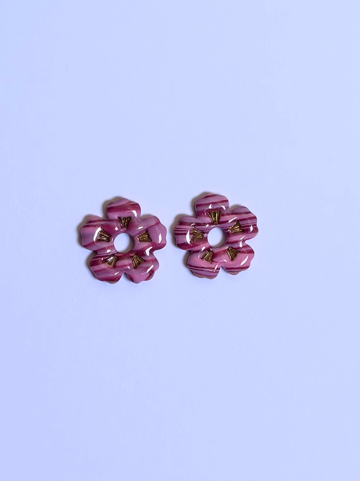 Une paire de Pampilles Ella de 20 mm en pâte polymère et recouverte légèrement de résine (rose- bordeaux - doré)