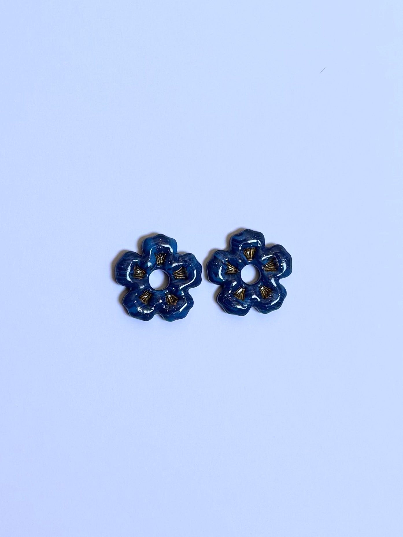 Une paire de Pampilles Ella de 20 mm en pâte polymère et recouverte légèrement de résine (bleu - noir- doré)