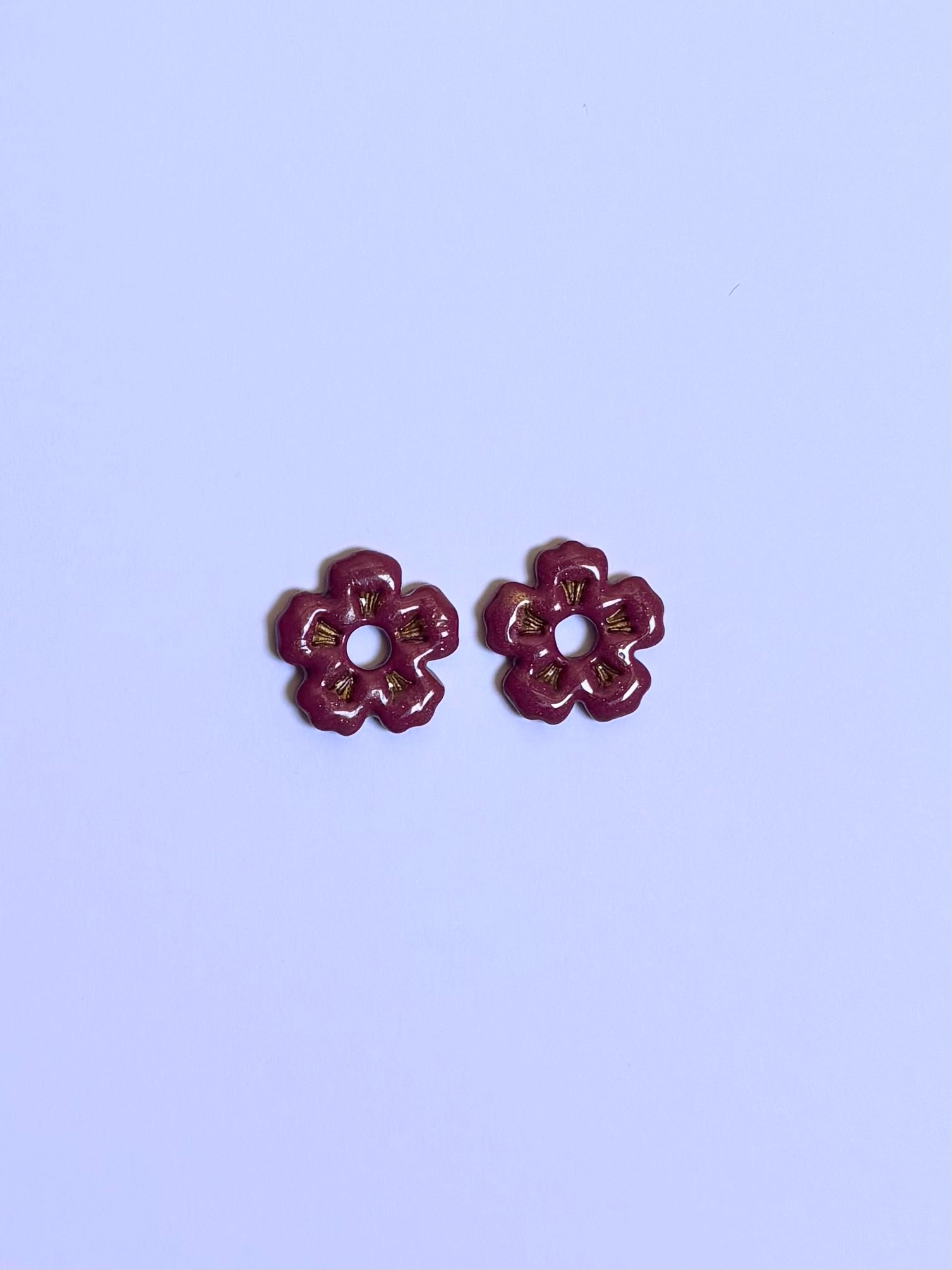 Une paire de Pampilles Ella de 20 mm en pâte polymère et recouverte légèrement de résine (bordeaux - doré)