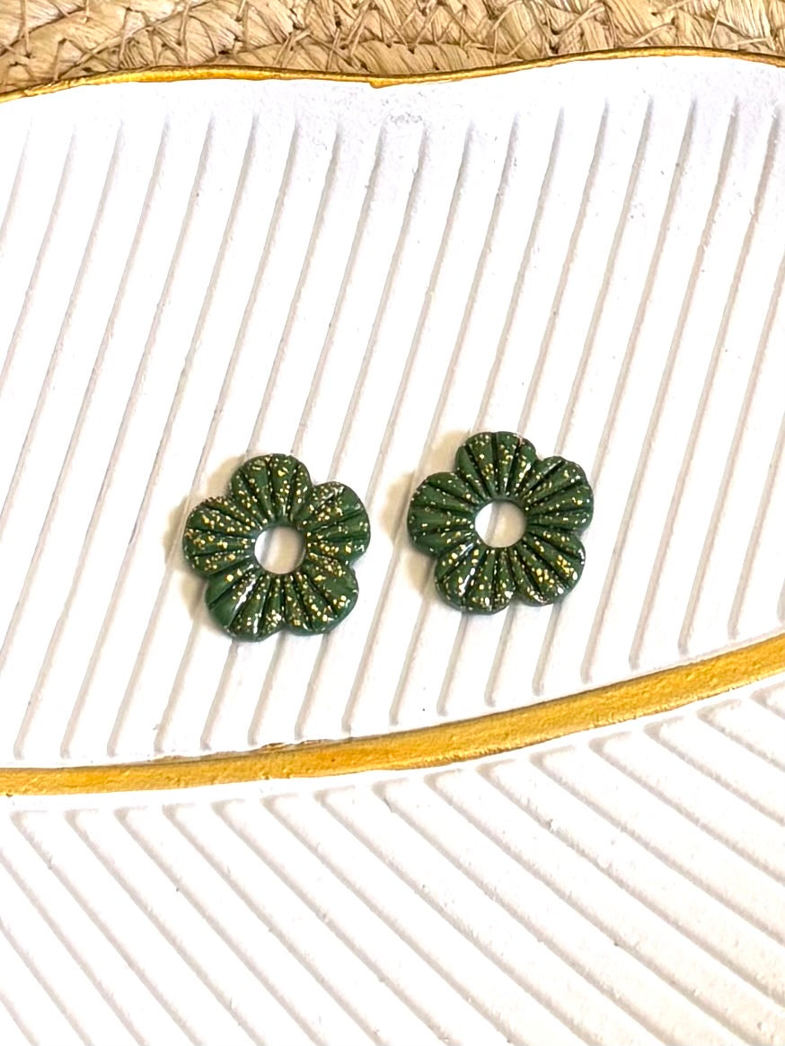 Une paire de Sara de 25 mm de couleur vert, avec un ajout de fines feuilles d’or pour une touche élégante et lumineuse.